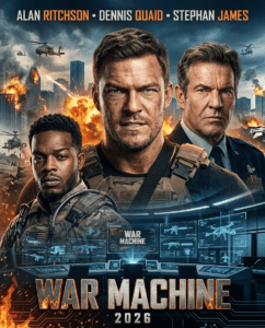 War Machine (2026) is a powerful military action drama that blends explosive battlefield intensity with a deeper exploration of loyalty, leadership, and the cost of modern warfare. Starring Alan Ritchson, Dennis Quaid, and Stephan James, the film presents a gripping story set in a volatile global conflict where advanced technology and human courage collide.